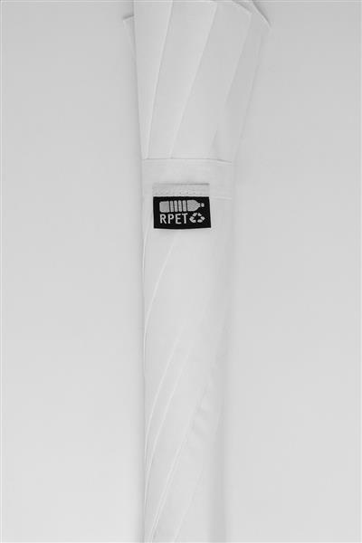 Automatyczny, wiatroszczelny parasol z 8 panelami, ramą z włókna szklanego, metalowym trzonkiem i zakrzywionym uchwytem ABS. 190T RPET pongee. Z charakterystyczną metką RPET.