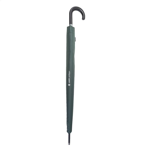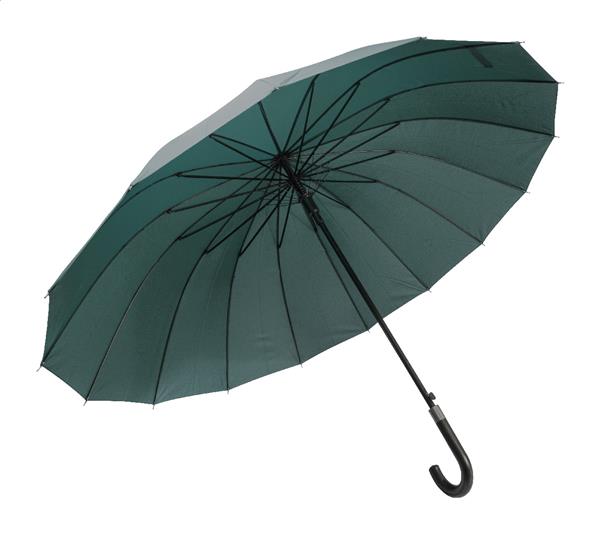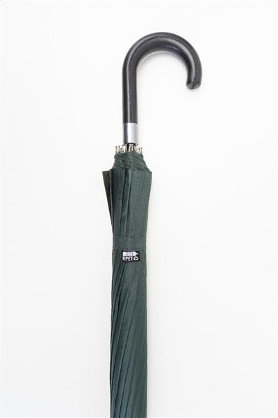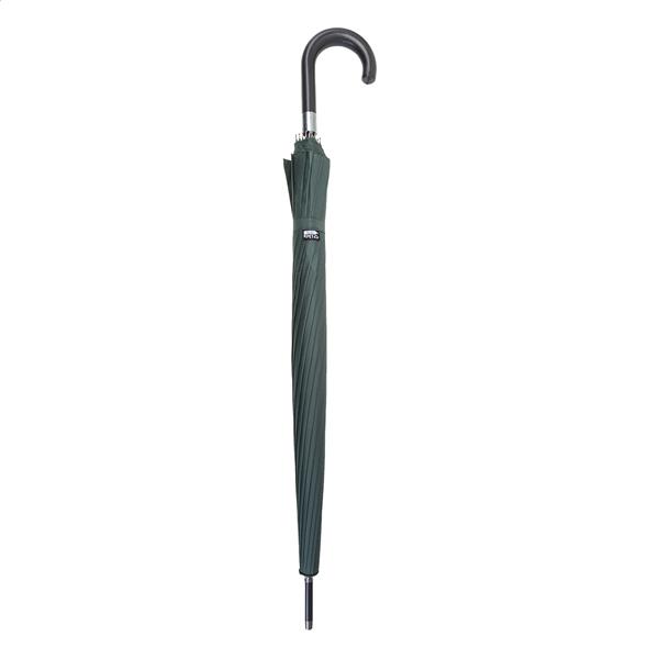 Duży, automatyczny, wiatroodporny parasol z 16 panelami, rączką ze skóry PU, metalową ramą i żebrami z włókna szklanego. Pongee 190T RPET. Z charakterystyczną metką RPET. W firmowym etui. Produkt marki André Philippe.