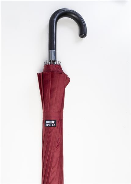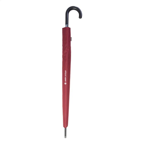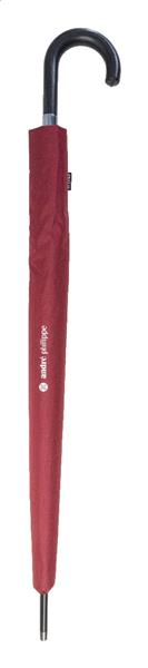 Duży, automatyczny, wiatroodporny parasol z 16 panelami, rączką ze skóry PU, metalową ramą i żebrami z włókna szklanego. Pongee 190T RPET. Z charakterystyczną metką RPET. W firmowym etui. Produkt marki André Philippe.