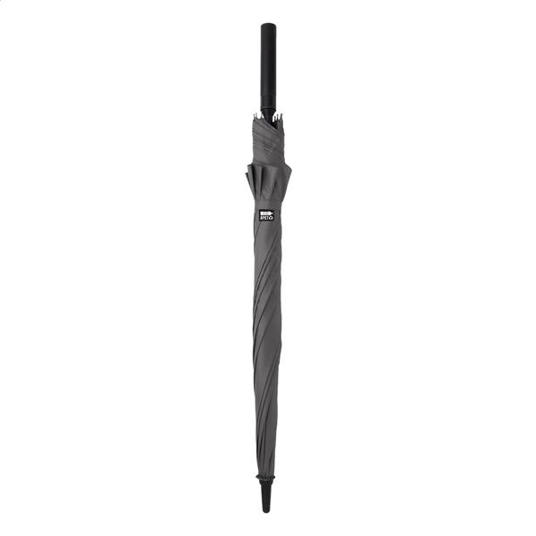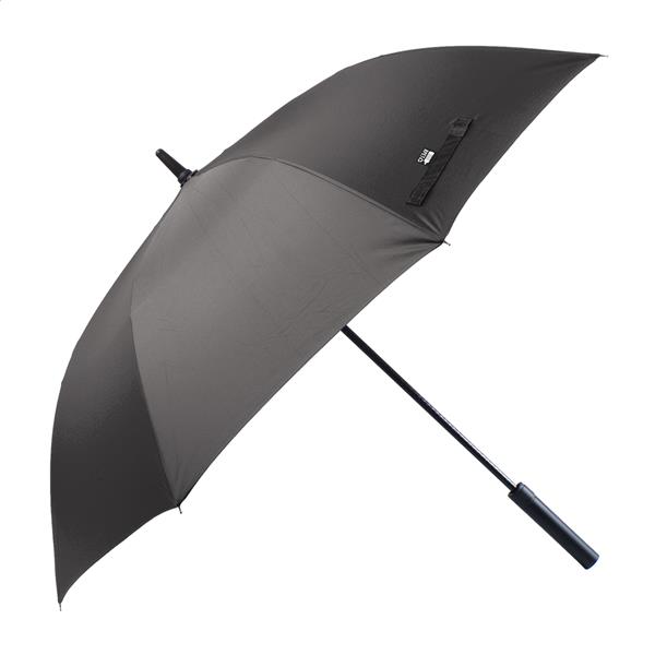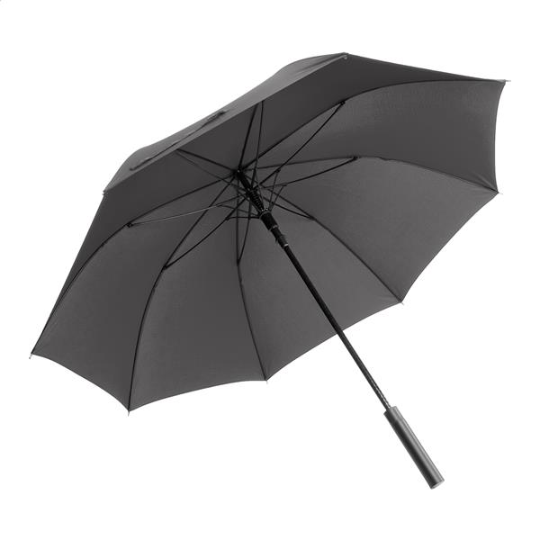 Duży, automatyczny parasol wiatroszczelny z 8 panelami, trzon i rama w całości z włókna szklanego, uchwyt ABS. Pongee 190T RPET. Z charakterystyczną metką RPET.