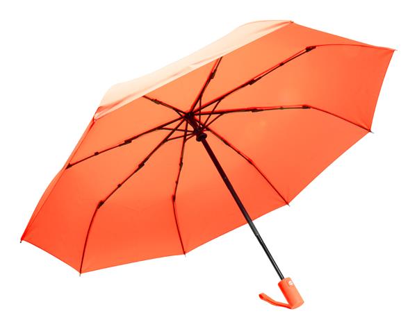 W pełni automatyczny (otwieranie/zamykanie), wiatroszczelny, składany parasol z 8 panelami w dopasowanym kolorystycznie etui. Z metalową ramą, żebrami z włókna szklanego i gumowanym uchwytem. Pongee 190T RPET. Z charakterystyczną metką RPET.