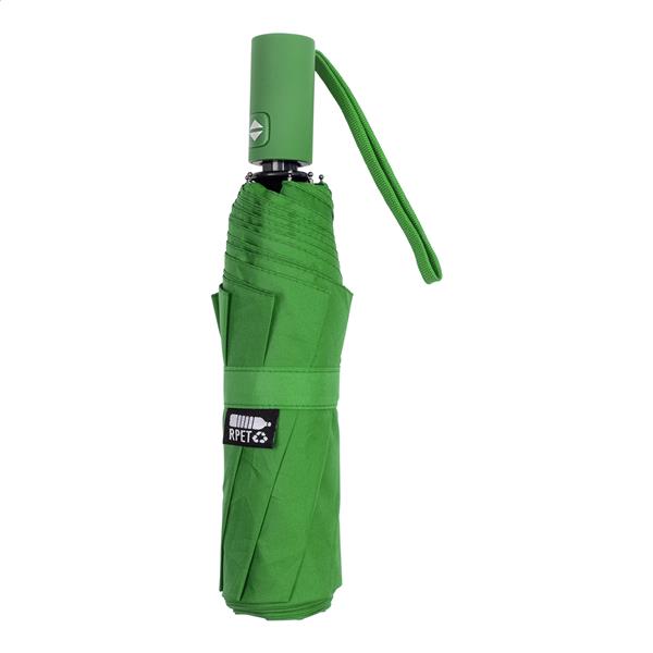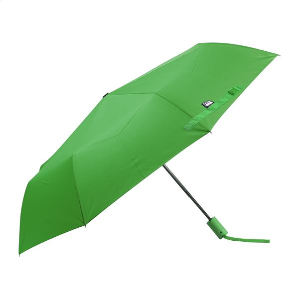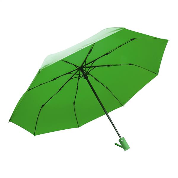 W pełni automatyczny (otwieranie/zamykanie), wiatroszczelny, składany parasol z 8 panelami w dopasowanym kolorystycznie etui. Z metalową ramą, żebrami z włókna szklanego i gumowanym uchwytem. Pongee 190T RPET. Z charakterystyczną metką RPET.