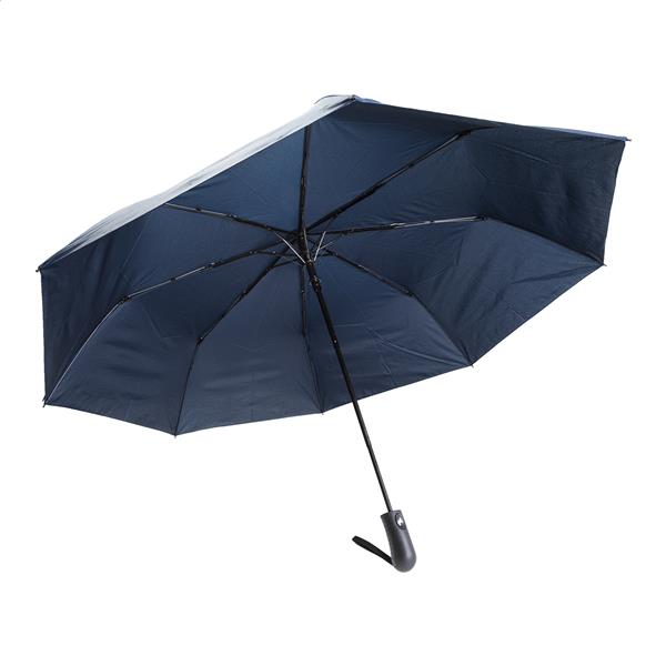 Duży, automatyczny wiatroszczelny składany parasol z 8 panelami w pasującym kolorowym pokrowcu. Z metalową ramą, żebrami z włókna szklanego i uchwytem ABS z paskiem na rękę. 190T RPET pongee. Z charakterystyczną metką RPET.