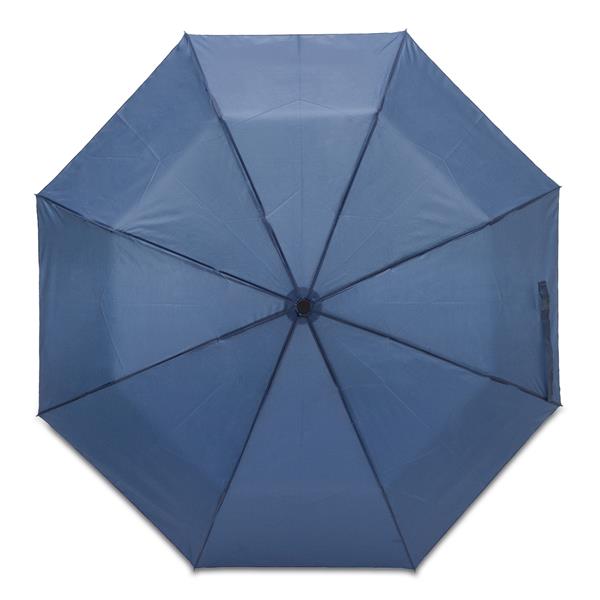 Składany wiatroodporny parasol ręcznie otwierany i zamykany. Rama i żebra wykonane z włókna szklanego i aluminium, pałąk z metalu. Plastikowa, gumowana rączka typu soft grip wyposażona w opaskę z taśmy elastycznej. Pakowany w wodoodporne etui z pongee. Średnica 970 mm.
