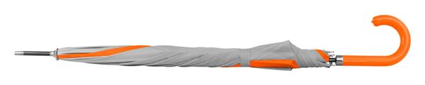 Description: Automatyczny, wiatroodporny, 8 panelowy parasol z jednym kolorowym panelem, rączką ze sztucznej skóry oraz ramą z metalu i włókna węglowego. Materiał 190T pongee. Primary Color: pomarańcz Secondary Color: szary Material 1: 190T pongee Material 2: Skóra PU Rozmiar: o1015×861 mm Panele parasola: 8 panel Mechanizm parasola: Automatyczny (otwieranie) Parasol – wiatroodporny: Nie