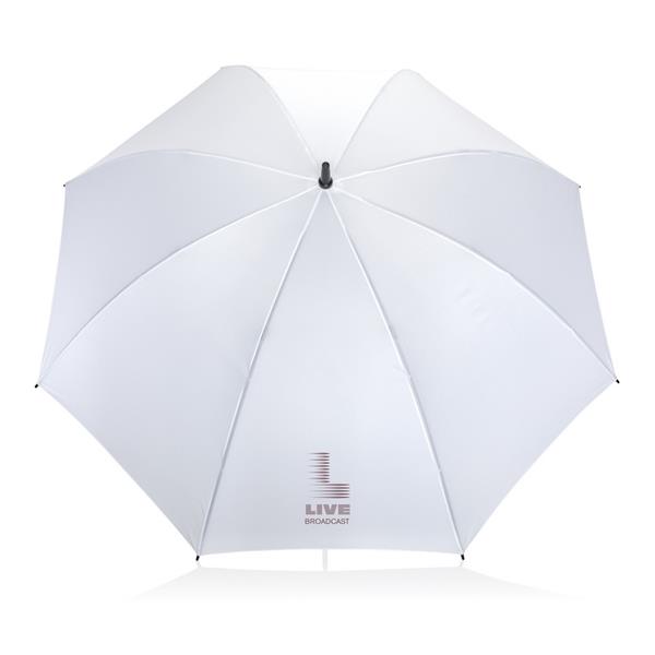 Parasol sztormowy 30″, manualne otwieranie, uchwyt z EVA, rama i żebrowanie z włókna szklanego, panele wykonane z 11,8 poddanych recyklingowi butelek PET (500 ml), dzięki zastosowaniu technologii AWARE™ wykorzystane materiały są identyfikowalne z pochodzenia, 2% wpływów z każdego sprzedanego produktu z kolekcji Impact jest przekazywane na rzecz Water.org