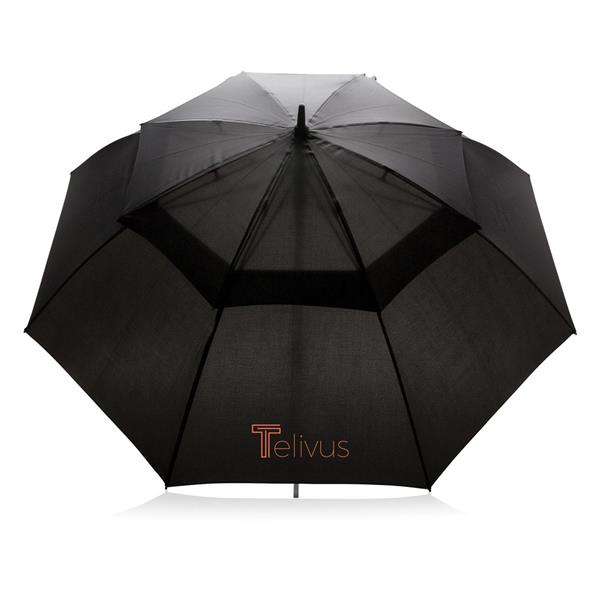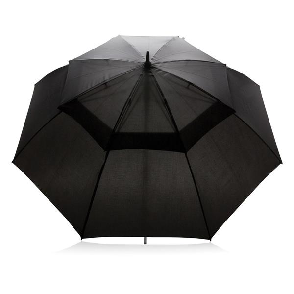Parasol sztormowy 30”, automatyczne otwieranie, manualne zamykanie, metalowa rama, żebra z włókna szklanego, gumowy uchwyt, dzięki zastosowaniu technologii fizycznych znaczników AWARE™ wykorzystane materiały są identyfikowalne z pochodzenia, 2% wpływów z każdego sprzedanego produktu z kolekcji Impact jest przekazywane na rzecz Water.org, ślad węglowy produktu: 4,34 kg CO2