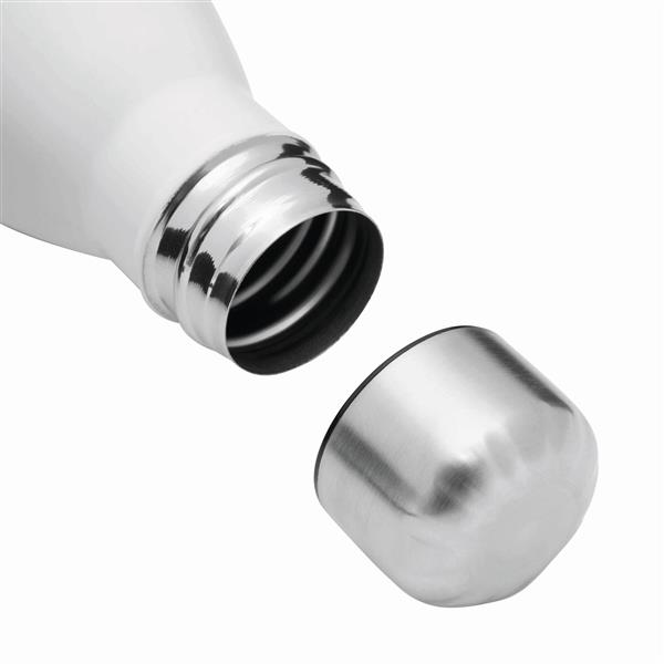 Butelka stalowa PARKY wykonana ze stali nierdzewnej, bezpieczna zakrętka, poj. ok. 600 ml. Materiał: Stal nierdzewna/Plastik Kolor: biały, srebrny Tagi: Butelki do napojów,przybory kuchenne,artykuły gospodarstwa domowego,kubki/garnki próżniowe,kubki/garnki termiczne,akcesoria podróżne