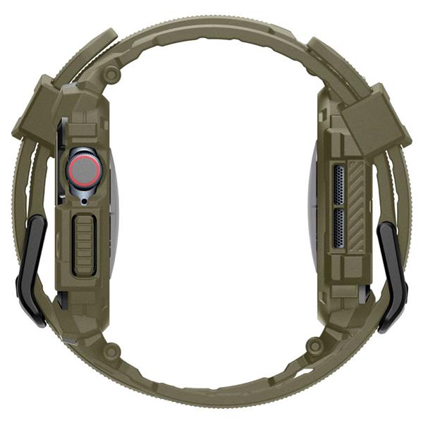 Wygodny pasek o sportowym zacięciu Spigen Rugged Armor Pro wykonany z elastycznego materiału TPU zdobionego akcentami z włókna węglowego. Posiada zintegrowaną obudowę z uwydatnionymi rantami, która pozwala na ochronę koperty zegarka przed zarysowaniami oraz uderzeniami. Pasek jest w pełni funkcjonalny i posiada możliwość regulacji według indywidualnych potrzeb.