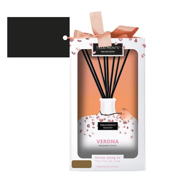 Patyczki zapachowe TREATMENTS, 200 ml, zapakowane w elegancki kartonik, zapach patyczków wypełni wnętrze domu ciepłem i niepowtarzalnym aromatem, dostępne różne warianty zapachowe: 03 – Ceylon, 06 – Mahayana, 08 – Omani, 11 – Uyuni, 16 – Zhejinag, 19 – Shinshiro, 21 – Verona, 98 – Samoa. Znakowanie produktu jest możliwe tylko na srebrnej lub złotej folii z czarnym nadrukiem albo na czarnej apli ze srebrnym lub złotym nadrukiem.