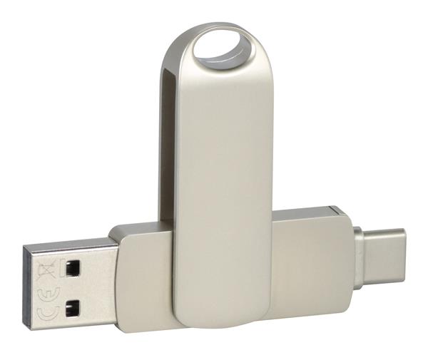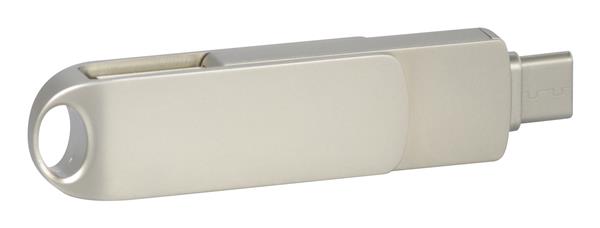 Niewielkich rozmiarów, elegancka pamięć typu slim, w wersji OTG-C. Posiada dwa wtyki USB – standardowy do komputera i Typ C do podłączenia do smartphonu lub tabletu. Wyposażona w obrotowe zamknięcie z praktycznym uszkiem.