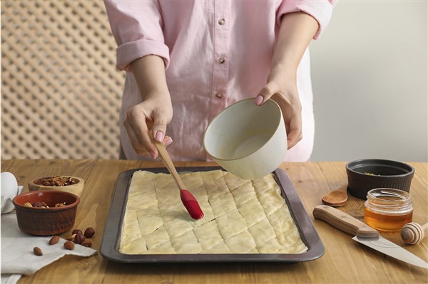 Silikonowy pędzel do gotowania z bambusową rączką.