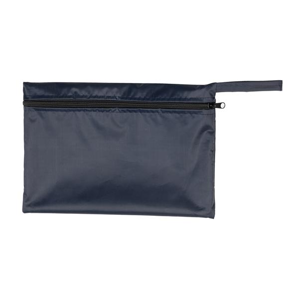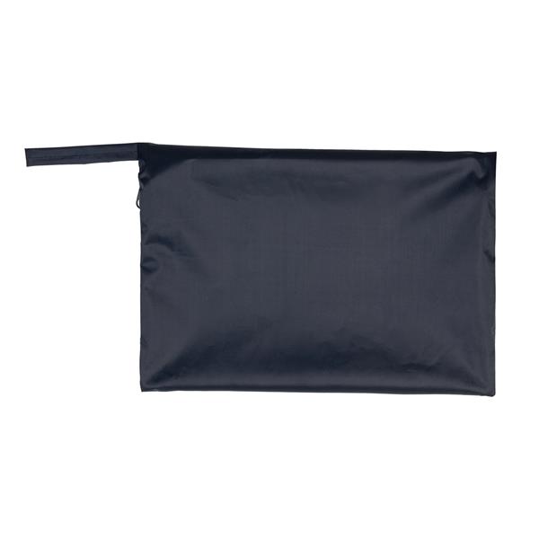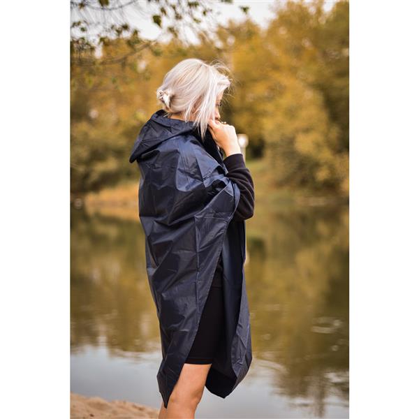 Solidna, przeciwdeszczowa peleryna z kapturem. Wykonana z tafty poliestrowej z powłoką PVC. Gramatura 200 g/m2. Przeszycia podklejone gumową taśmą. Pakowana w zapinany pokrowiec wykonany z tego samego materiału. Idealna na rower lub spacer z psem w deszczowe dni.