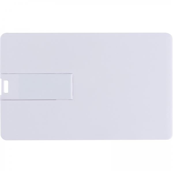Plastikowy pendrive w kształcie karty kredytowej o pojemności 8GB.
