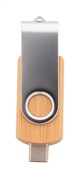 Pendrive USB Twist OTG w obudowie bambusowo-metalowej z pamięcią 4/8/16/32 GB. Ze złączami USB i USB-C. W pudełku z papieru kraft. USB 2.0.