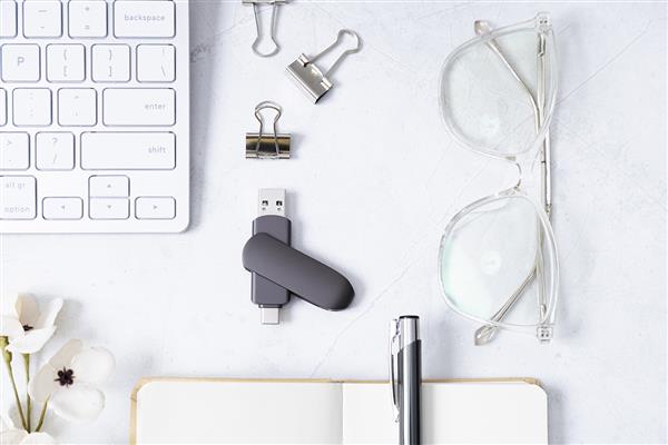 Pendrive USB Twist OTG w obudowie metalowej z pamięcią 16/32 GB. Z połączeniami USB i USB-C. W blaszanym pudełku. USB 2.0.
