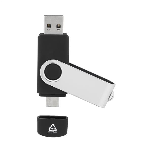 Pamięć USB Twist OTG w obudowie z recyklingowanego ABS i metalu z pamięcią 8/16/32 GB. Złącza USB i USB-C. USB 2.0.