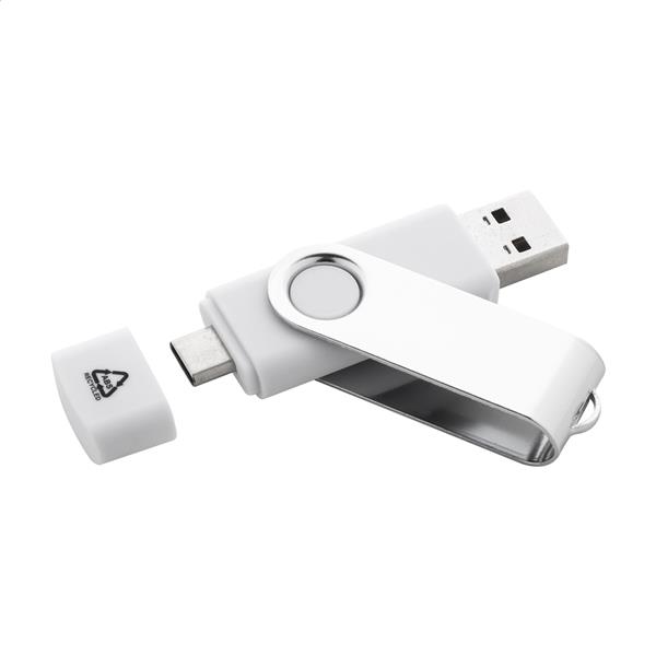 Pamięć USB Twist OTG w obudowie z recyklingowanego ABS i metalu z pamięcią 8/16/32 GB. Złącza USB i USB-C. USB 2.0.