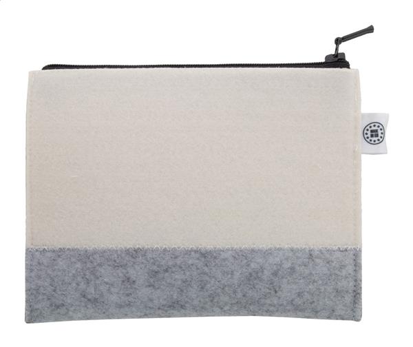 Description: Personalizowana kosmetyczka zapinana na zamek z filcu RPET z nadrukowaną na całej powierzchni grafiką sublimacyjną. Z charakterystyczną metką RPET. Min. Ilość: 50 szt. Primary Color: biały Secondary Color: szary Rozmiar: 190×150 mm Material 1: Filc PET z recyklingu Pojemność torby: 0.2 l Metka: Z metką