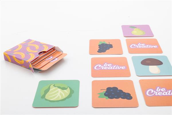 Description: Gra memory z motywami tematycznymi w personalizowanym pudełku papierowym. Z 24 kafelkami (55×55 mm). Cena obejmuje full kolorowy nadruk na odwrocie wszystkich kafelków i pudełko z nadrukiem w full kolorze. Min. ilość: 100 szt. Primary Color: biały Material 1: Papier Rozmiar: 56×56×12 mm Shape: owoces