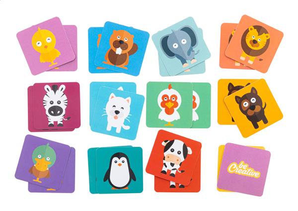 Description: Gra memory z motywami tematycznymi w personalizowanym pudełku papierowym. Z 24 kafelkami (55×55 mm). Cena obejmuje full kolorowy nadruk na odwrocie wszystkich kafelków i pudełko z nadrukiem w full kolorze. Min. ilość: 100 szt. Primary Color: biały Material 1: Papier Shape: zwierzęta Rozmiar: 56×56×12 mm