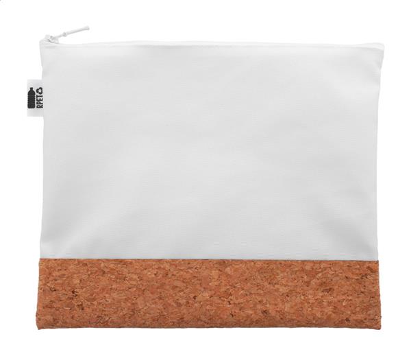Description: Personalizowana, zapinana na zamek kosmetyczka z poliestru 600D RPET i naturalnego korka. Z nadrukowaną grafiką sublimacyjną na całej powierzchni. Min. ilość: 50 szt. Primary Color: biały Secondary Color: naturalny Material 2: Korek Material 1: 600D Poliester z recyklingu PET Rozmiar: 250×200 mm