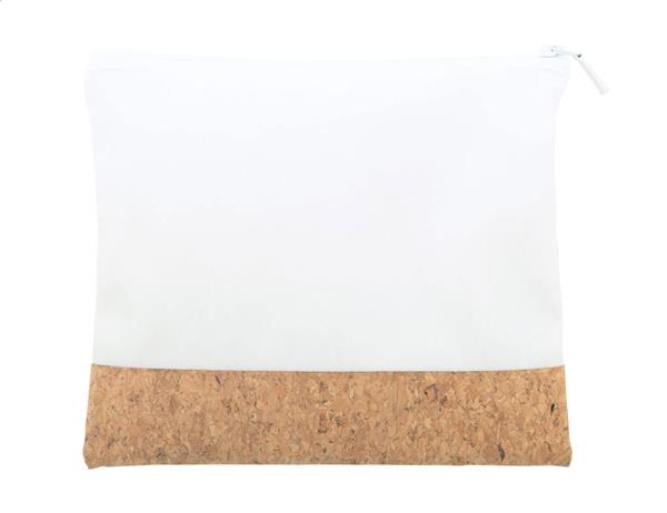 Description: Personalizowana, zapinana na zamek kosmetyczka z poliestru i naturalnego korka. Z nadrukowaną grafiką sublimacyjną na całej powierzchni. Min. ilość: 50 szt. Primary Color: biały Material 1: Poliester Secondary Color: naturalny Material 2: Korek Rozmiar: 190×150 mm