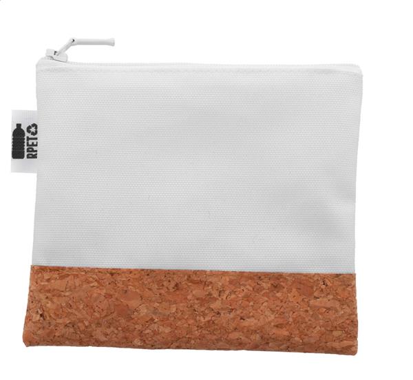 Description: Personalizowana, zapinana na zamek kosmetyczka z poliestru 600D RPET i naturalnego korka. Z nadrukowaną grafiką sublimacyjną na całej powierzchni. Min. ilość: 50 szt. Primary Color: biały Secondary Color: naturalny Material 2: Korek Material 1: 600D Poliester z recyklingu PET Rozmiar: 150×120 mm