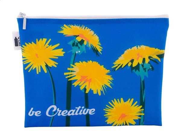 Description: Personalizowana, zapinana na zamek kosmetyczka z poliestru 600D RPET. Z nadrukowaną grafiką sublimacyjną na całej powierzchni. Min. ilość: 50 szt. Primary Color: biały Material 1: 600D Poliester z recyklingu PET Rozmiar: 250×200 mm