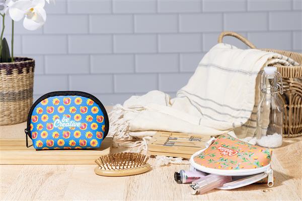 Kosmetyczka na zamówienie, zapinana na zamek, wykonana z neoprenu RPET. Z charakterystyczną metką RPET i grafiką nadrukowaną metodą sublimacji na całej powierzchni. Min.ilość: 50 szt.