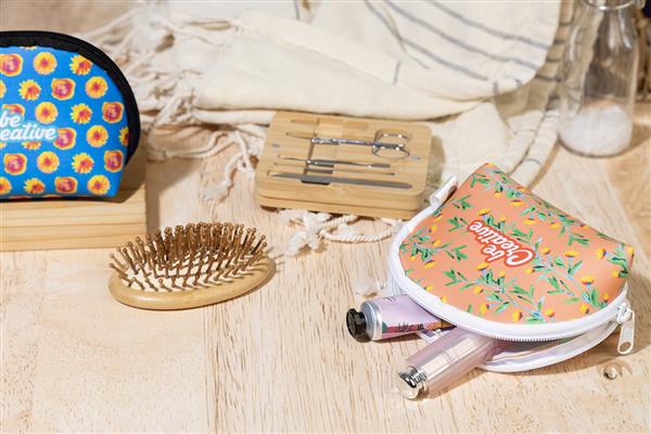Kosmetyczka na zamówienie, zapinana na zamek, wykonana z neoprenu RPET. Z charakterystyczną metką RPET i grafiką nadrukowaną metodą sublimacji na całej powierzchni. Min.ilość: 50 szt.