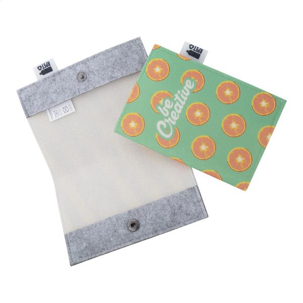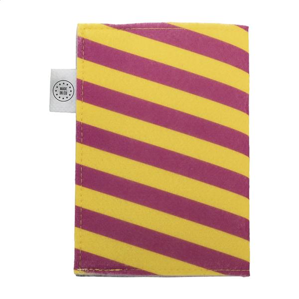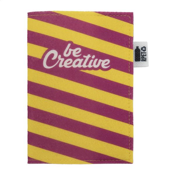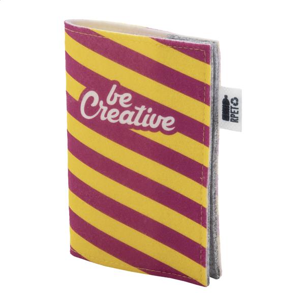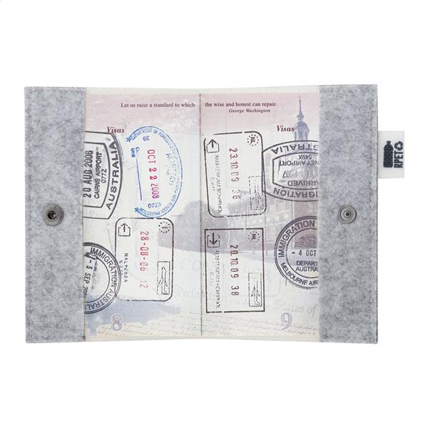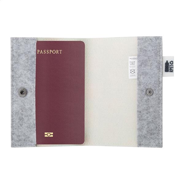 Personalizowane, filcowe etui na paszport RPET z full kolorową okładką z nadrukiem i zapięciem na zatrzask. Z charakterystyczną metką RPET. Cena zawiera nadruk sublimacyjny. Min. Ilość: 50 szt.