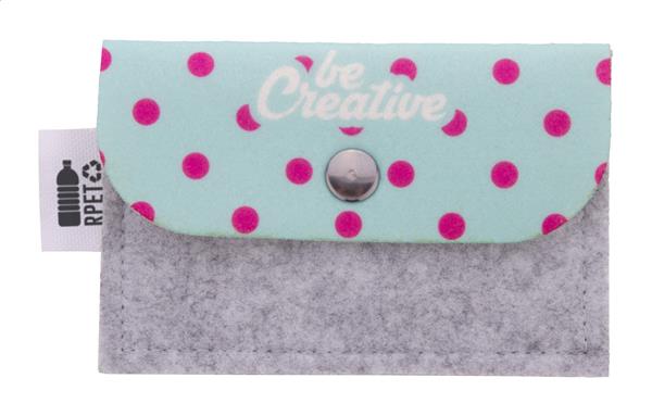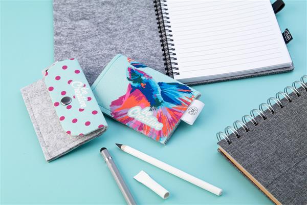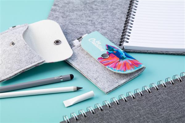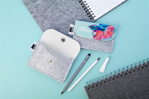 Description: Personalizowana, filcowa torebka RPET z klapą i tyłem z full nadrukiem. Z charakterystyczną metką RPET. Cena zawiera nadruk sublimacyjny. Min. Ilość: 50 szt. Primary Color: biały Secondary Color: szary Metka: Z metką Material 1: Filc PET z recyklingu Rozmiar: 114×77 mm
