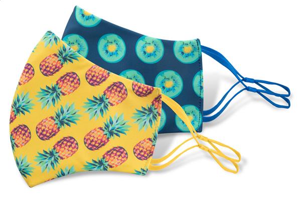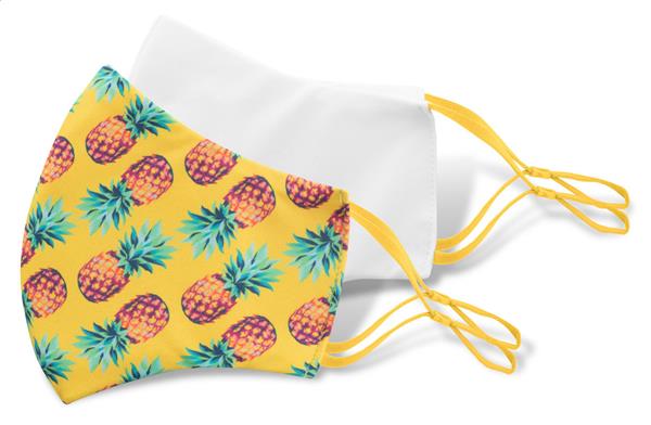 - Description: Personalizowana, nadająca się do prania, wielokrotnego użytku dwuwarstwowa maseczka na twarz z regulowanymi, elastycznymi zausznikami i nadrukiem sublimacyjnym. W rozmiarze dla dorosłych. Wykonana ze 100% poliestru (140 gr/m2) i 100% bawełny (140 gr/m2). Cena zawiera nadruk sublimacyjny. Min. ilość: 50 szt.