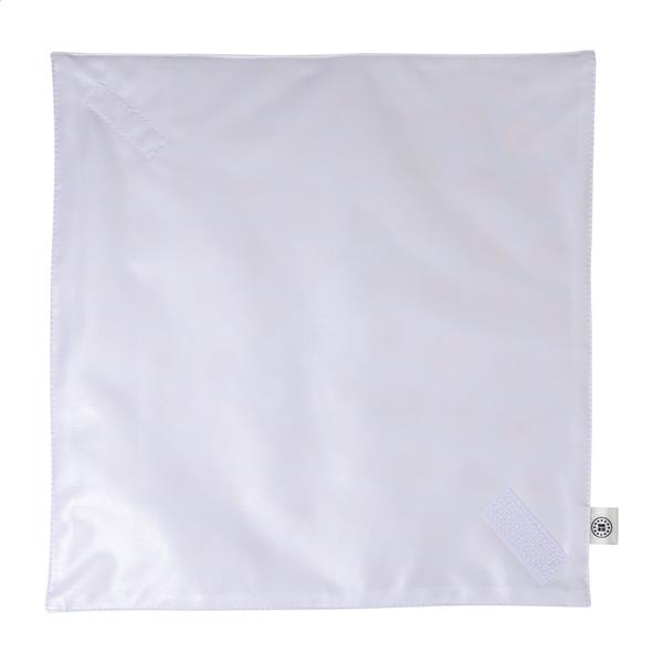 Składana, wykonana na zamówienie, wielokrotnego użytku torba na kanapki z poliestru RPET 600D z wytrzymałą, wodoodporną podszewką i zapięciem na rzep. Idealna do pakowania przekąsek lub kanapek. Z nadrukiem sublimacyjnym na całej powierzchni. Min. ilość: 25 szt. Primary Color: biały Material 1: 600D Poliester z recyklingu PET Rozmiar: 300×300 mm