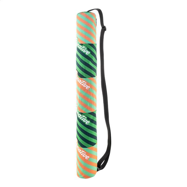 Torba na puszki wykonana na zamówienie z poliestru 600D RPET z przegrodą na suwak i regulowanym paskiem na ramię. Z nadrukowaną grafiką sublimacyjną i charakterystyczną metką RPET. Pasuje do 5 puszek aluminiowych standardowego typu 0,33 L. Min. ilość: 25 szt.
