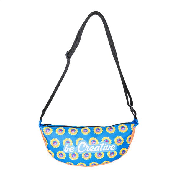 Torba na ramię wykonana na zamówienie, wykonana z poliestru 600D RPET, z regulowanym paskiem i przegrodą zapinaną na zamek. Z nadrukowaną grafiką sublimacyjną na całej powierzchni i charakterystyczną metką RPET. Min. ilość: 25 szt.