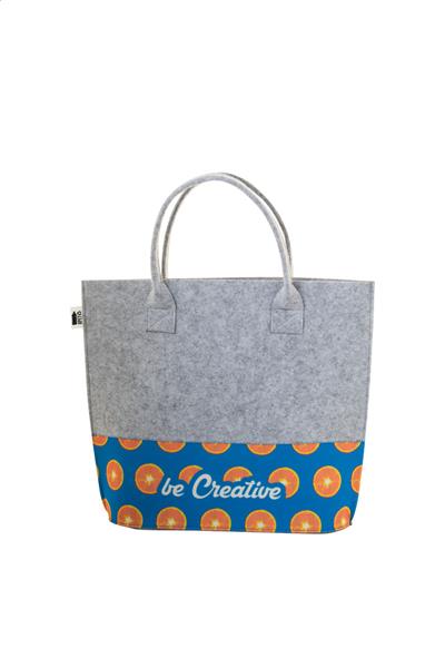 Description: Personalizowana, filcowa torba na zakupy RPET z wkładką z nadrukiem full color. Z krótkimi paskami, dolnym klinem i charakterystyczną metką RPET. Cena zawiera nadruk sublimacyjny. Min. Ilość: 25 szt. Primary Color: biały Secondary Color: szary Metka: Z metką Material 1: Filc PET z recyklingu Rozmiar: 320×420×110 mm