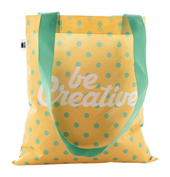 Description: Personalizowana, torba z włókniny RPET z długimi uchwytami. 80 g/m2. Z pełnym zadrukiem sublimacyjnym. Z metką RPET. Min. ilość: 25szt. Primary Color: biały Gramatura 1: 80 g/m2 Rozmiar: 360×380 mm Pojemność torby: 4.1 l Material 1: Włóknina z recyklingu PET