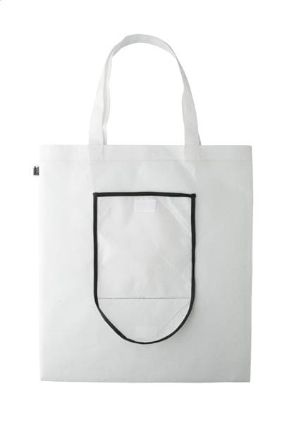 Description: Personalizowana, składana torba na zakupy z włókniny RPET, zapinana na rzep. Z nadrukowaną grafiką sublimacyjną i metką RPET. Min. ilość: 25 szt. Primary Color: czarny Secondary Color: biały Ładowność torby: 15 kg Material 1: Włóknina z recyklingu PET Rozmiar: 360×580×3 mm