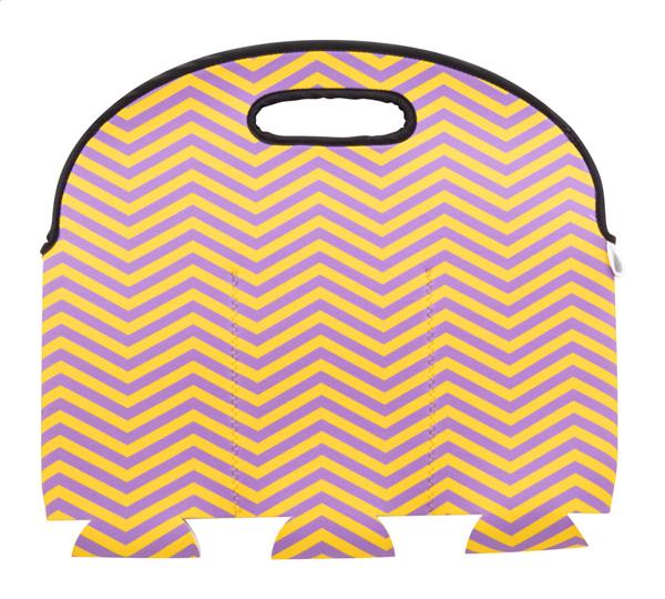 Personalizowana, neoprenowa torba na piwo RPET z uchwytami. Z nadrukowaną grafiką sublimacyjną na całej powierzchni. Na 3 puszki lub butelki. Min. ilość: 25 szt.