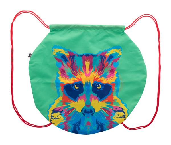 Description: Personalizowana torba w kształcie kuli z kolorowymi sznurkami, poliester 190T RPET. Z nadrukowaną grafiką sublimacyjną i charakterystyczną metką RPET. Min. ilość: 25szt. Primary Color: czerwony Secondary Color: biały Material 1: 190T Poliester z recyklingu PET Rozmiar: o400×3 mm