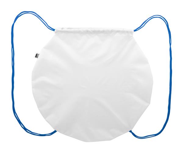 Description: Personalizowana torba w kształcie kuli z kolorowymi sznurkami, poliester 190T RPET. Z nadrukowaną grafiką sublimacyjną i charakterystyczną metką RPET. Min. ilość: 25szt. Primary Color: niebieski Secondary Color: biały Material 1: 190T Poliester z recyklingu PET Rozmiar: o400×3 mm