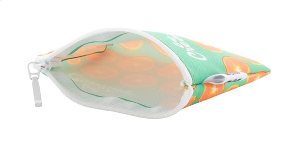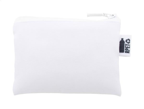 Description: Personalizowana torebka zapinana na zamek z poliestru 600D RPET. Z charakterystyczną metką RPET i nadrukowaną na całej powierzchni grafiką sublimacyjną. Min. ilość: 50 szt. Primary Color: biały Material 1: 600D Poliester z recyklingu PET Rozmiar: 110×80×5 mm