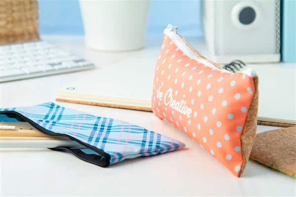 Description: Personalizowany, zapinany na zamek piórnik z poliestru z grzbietem z naturalnego korka. Z nadrukowaną sublimacją grafiką z przodu. Min. ilość: 50 szt. Primary Color: biały Material 1: Poliester Material 2: Korek Rozmiar: 230×100 mm