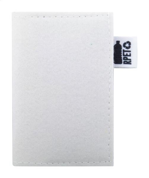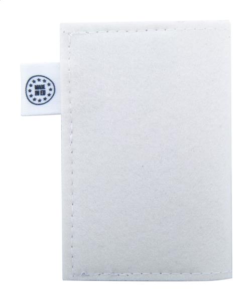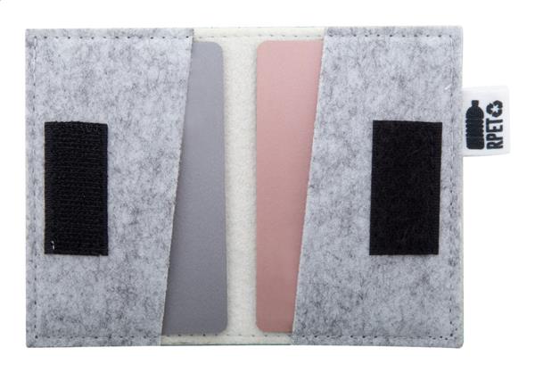 Description: Wykonane na zamówienie, filcowe etui na karty kredytowe RPET z 2 przegródkami na karty, zapięciem na rzep i z nadrukiem w full kolorze. Z charakterystyczną metką RPET. Cena obejmuje nadruk sublimacyjny. Min. ilość: 50 szt. Primary Color: biały Secondary Color: szary Metka: Z metką Material 1: Filc PET z recyklingu Rozmiar: 65×95×10 mm
