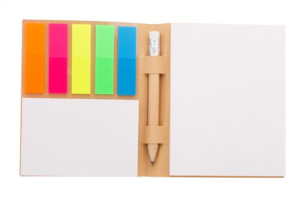 Description: Wykonany na zamówienie notatnik samoprzylepny w okładce z papieru kraft z mini drewnianym ołówkiem. Zawiera karteczki samoprzylepne z makulatury w 2 rozmiarach (50 kartek 100×75 mm, 25 kartek 50×75 mm) i 100 zakładek z folii plastikowej w 5 różnych kolorach (12×44 mm). Cena obejmuje zadrukowaną w full kolorze okładkę zewnętrzną. Min. ilość: 100 szt. […]