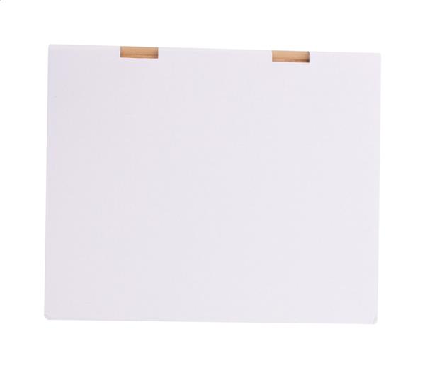 - Description: Wykonany na zamówienie notatnik samoprzylepny w okładce papierowej z mini drewnianym ołówkiem. Zawiera karteczki samoprzylepne z makulatury w 2 rozmiarach (50 kartek 100×75 mm, 25 kartek 50×75 mm) i 100 zakładek z folii plastikowej w 5 różnych kolorach (12×44 mm). Cena obejmuje zadrukowaną w full kolorze okładkę zewnętrzną. Min. ilość: 100 szt.