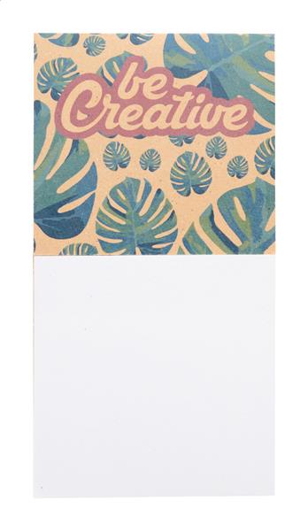 Wykonany na zamówienie dozownik na karteczki na notatki z papieru kraft z recyklingu z pionowym nagłówkiem. Zawiera 50 arkuszy karteczek samoprzylepnych z papieru z recyklingu (75×75 mm). Cena obejmuje full kolorowy nadruk na uchwycie. Min. ilość: 100 szt.