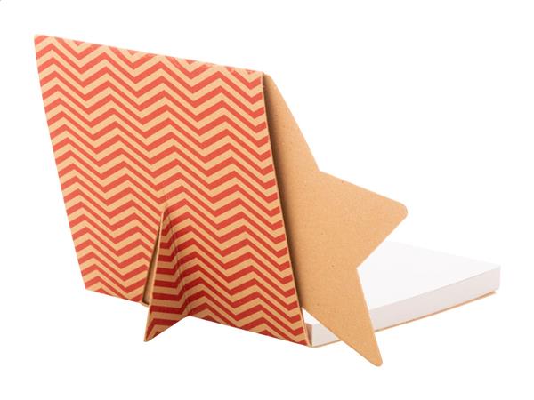 Description: Personalizowany, papierowy dozownik kartek świątecznych zawierający 50 kartek samoprzylepnych z papieru pochodzącego z recyklingu. Cena obejmuje nadruk w full kolorze na górze. Min. ilość: 100 szt. Primary Color: naturalny Material 1: Papier z recyklingu Shape: gwiazda Rozmiar: 75×70×75 mm